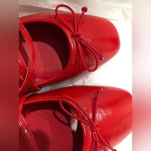 Aldo red crinkled patent bow double strap square toe ballet flats size 10 new