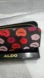 Aldo red pink orange lipstick kisses print zip around black wallet clutch wristlet new in sparkly glittery black box