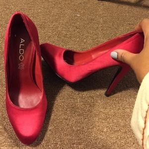 Great Valentine's Day shoe! Absolutely love love these heels but since having my daughter my feet have grown tremendously and I can no longer fit them comfortably. Besides the one dot shown in the picture there is nothing wrong with the shoe.