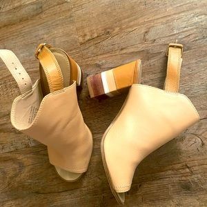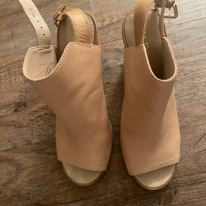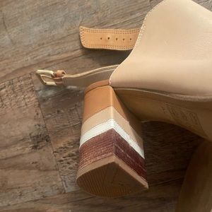 The shoe heel is 4 inches, size 8.5 USA. Very comfortable and fancy. No color out.