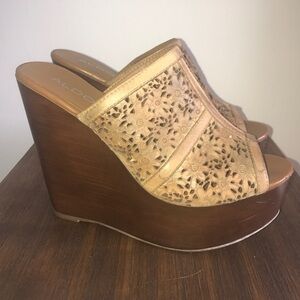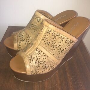 Aldo leather lace wedge heels. Worn once. Lacy leather upper has a worn look that is intentional- please see pics for details! Size 39 but would definitely fit a 38/US 8