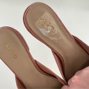 Aldo womens flats size 9 40 pink faux suede faux fur pointy toe slip on mules