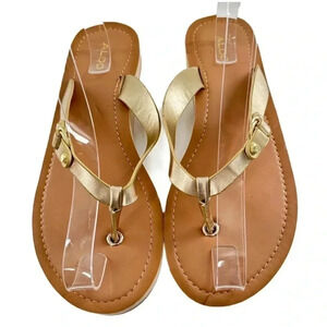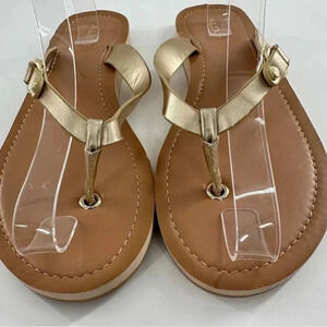 Aldo womens sandals size 9 40 gold leather flip flops coastal resort wear