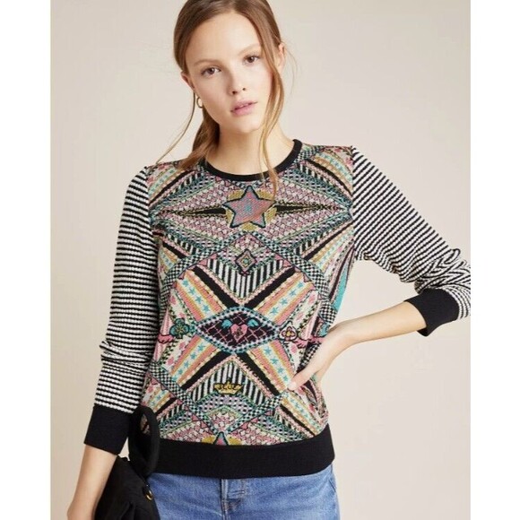 AldoMartins Anthropologie Teodora Abstract Pullover Sweater sz XS Artsy Tribal
