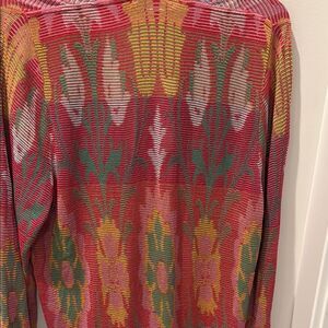 Aldo Martins Tropical Red and Yellow Cardigan Sweater V-Neck size 10
