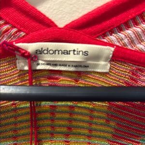 Elevate your style with the Aldo Martins cardigan sweater, showcasing a vibrant blend of red and yellow hues. This lightweight, V-neck cardigan is perfect for layering, offering a soft texture and an eye-catching design. Its artistic pattern adds a unique touch to any ensemble, making it a standout piece in your wardrobe.