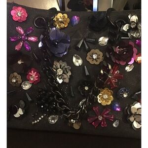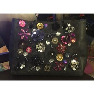 Aldo~Pretty Black & Colorful Flowers Satchel Handbag Purse