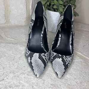 Aldo Snakeprint Pointed Toe scalloped Heels sz 11