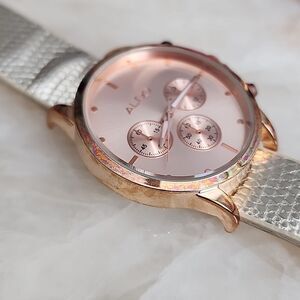 used condition, signs of wear, see photos for discoloration on the watch. Bands are new, only gold one was worn once. Battery needs to be changed.