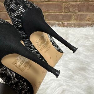 Aldo Women’s Haida Black & Silver Embellished Heel Size 9