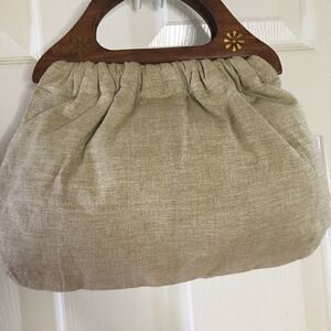 Aldo khaki canvas beads wooden handle satchel bag
