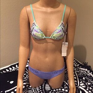 Brand New With Tags! Ale- Multi Color Triangle Top- Size Small. Top: Triangle top, Spaghetti straps with beaded tassel tie detail, Halter closure, Allover design, Removable padding