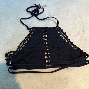 Ale by Alessandra Black Crochet High Neck Halter Bikini Top Size Medium