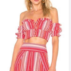 Ale by Alessandra Red, Orange, White Cropped Off The Shoulder Paulita Top