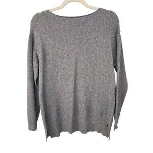 Alea Pearl Embellished Pullover Sweater Womens Large Gray Ribbed Knit Viscose