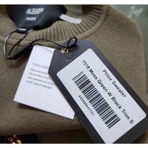 Aleeza Paris Moss Green Sweater with Black Leather Pocket Size S NWT