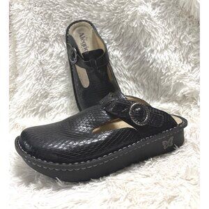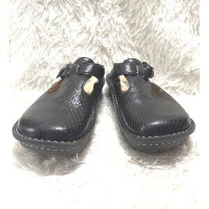 Alegria ALG-711 Black Leather Slip-On Clogs Buckle Strap & Comfort Sole EU39