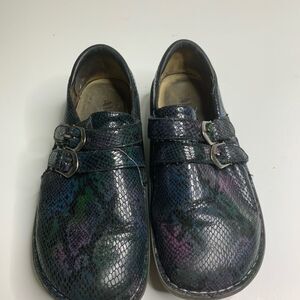 Alegria Alli leather clog comfort shoes embossed colorful size 38