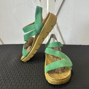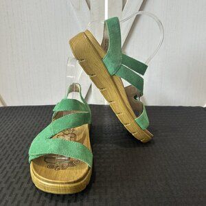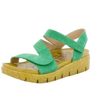Kick up your heels and relax in the Anah sandal, this multi adjustable strap sandal is great to pair with your casual outfits. Featured in a lovely Pear suede leather, accentuated with a contrast woodgrain print patterned footbed, this platform is the perfect weekend sandal.