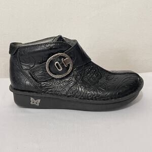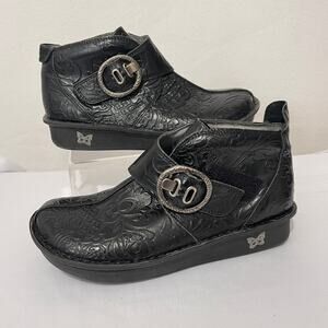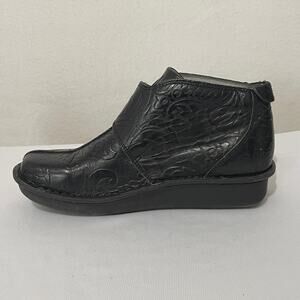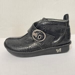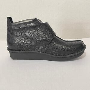 Alegria Ankle Booties Womens EU 36 US 6-6.5 Black Tooled Leather Hook & Loop, Adjustable. Excellent condition