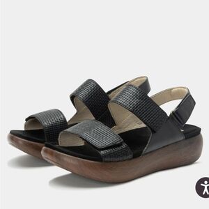 Step into comfort with Alegria's stylish black sandals. Perfect for any occasion, these shoes offer both elegance and support.