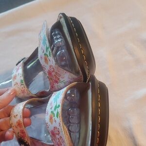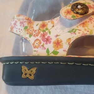 NWOT...Experience comfort and style with Alegria's white and pink sandals, featuring a sturdy sole and adjustable velcro strap for a perfect fit. These sandals are designed for everyday wear, combining a casual look with a touch of elegance. Ideal for spring and summer, they offer a delightful blend of practicality and fashion. Check out all pics for details.
