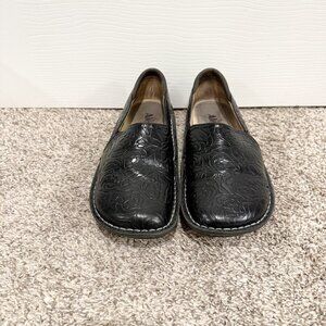 Alegria Black Leather Debra DEB-531 Floral Embossed Rose Slip On Clog Nurse 38