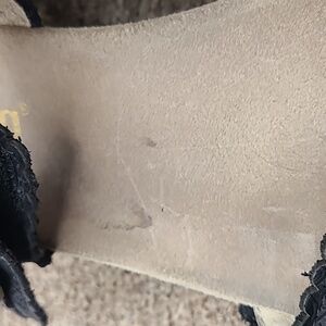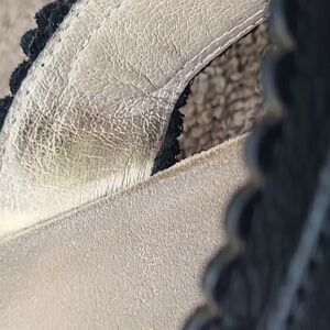 Condition: Good pre-owned condition with some wear and discoloration showing. The interior footbed has discoloration from wear and the inside of the straps has discoloration (black) showing.
