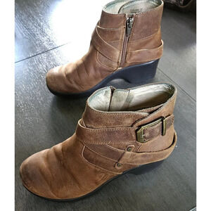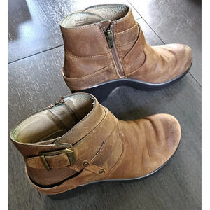 Alegria By PG Lite Boots Sz 37 Eva Wedge Ankle Booties Brown Distress Leather