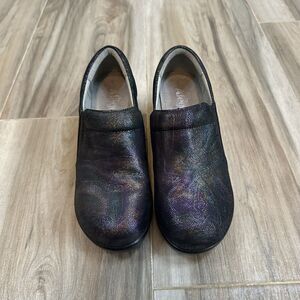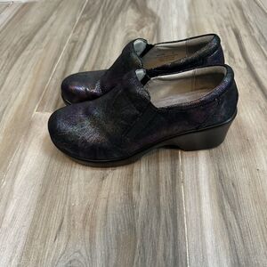 Alegria By PG Lite Shoes US Sz 7 Casual Slip On Clogs Black Crome Color Leather