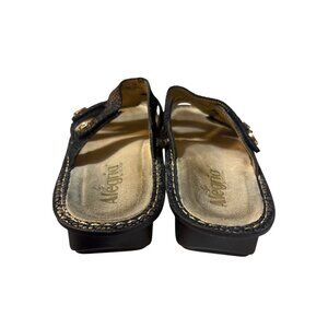 These Alegria slip-on sandals feature a supportive footbed, adjustable straps, and lightweight construction designed for comfort and durability.