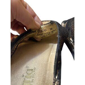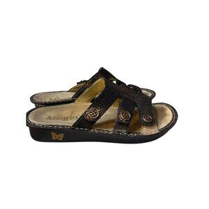 Alegria By PG Lite Womens Black Slip-On Sandals With Adjustable Straps & Gold Ac