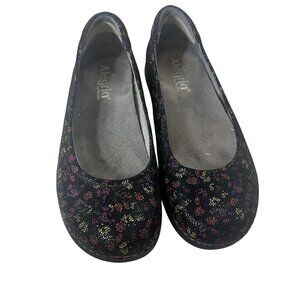 Alegria By PG Lite Womens Floral Slip-Resistant Leather Flats Size 7