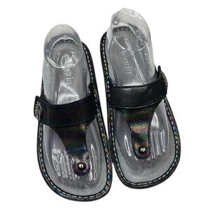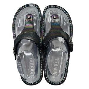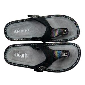 Alegria Carina Blue Rainbow Leather Thong Platform Sandal