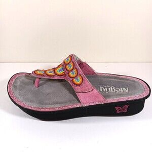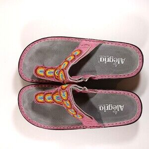 Alegria Carina Sandals Wn 7 Pink Leather Flip Flops Slip On Rainbow Beaded Aztec