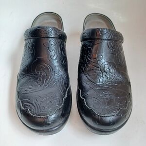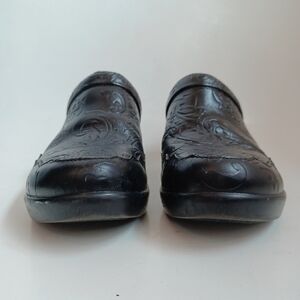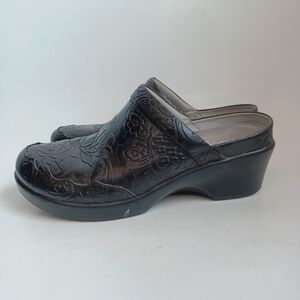 Alegria Clogs Mules Black Tooled Leather Slip On Comfort Western Womens 8 or 39