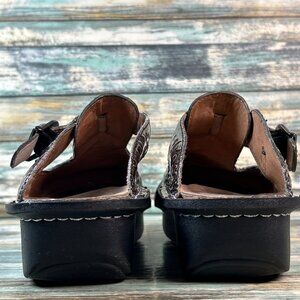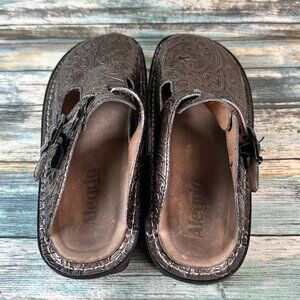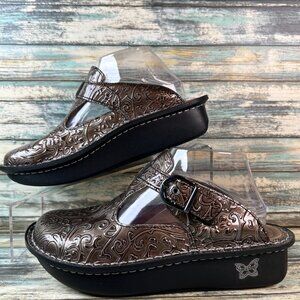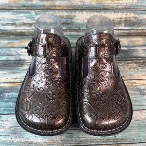 Alegria Clogs Womens Sz 7-7.5 Metallic Brown Embossed Patent Leather Wedge Shoes