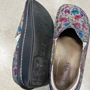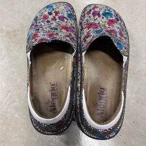 Alegria slip-ons with a vibrant, speckled design. Perfect for adding flair to any outfit.