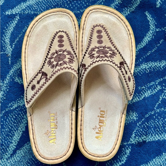 Alegria Cream and Brown Sandals with Ornamental Design