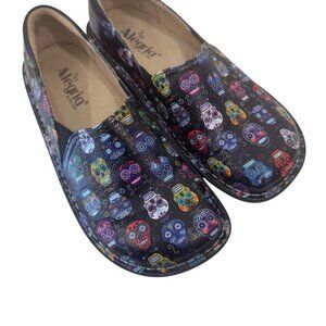 Alegria DEB-484 Womens SZ 38 Slip-On Shoes With Multicolor Sugar Skull Print