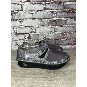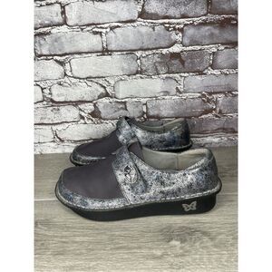 Selling Alegria DEN-735 MOON SHADOW Gray Leather Shoes Slip-On Clogs Women Sz 39EU/8.5M US