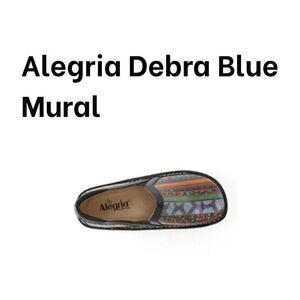 This beautiful pair of Alegria Debra clogs boasts a colorful and vibrant blue mural design with butterfly logo accents. The slip-on style makes them easy to wear and perfect for casual occasions. The shoes have a low heel height and standard width, and are made with leather upper, lining, and insole material.
