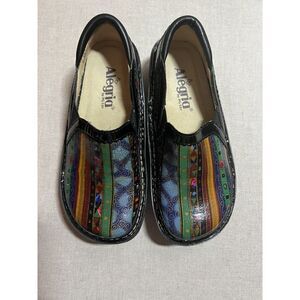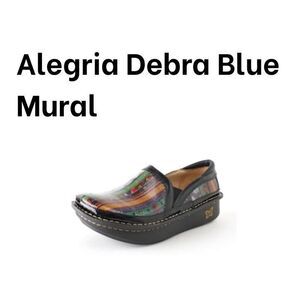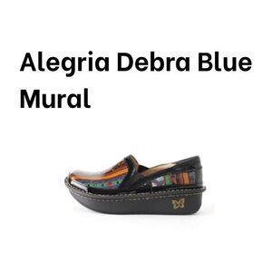 Alegria Debra Multicolor Blue Mural Non Slip Clogs Butterfly Logo EU Size 34