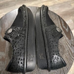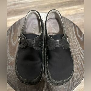 Alegria Den 435 Women's Black Embossed Leather Neoprene Comfort Shoes Clog