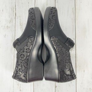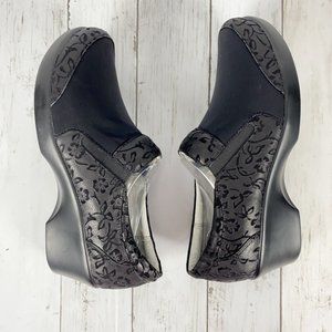 Alegria ERY-481 Black Leather Stretch Clogs Floral Sz 11 EU 42 NWOB.