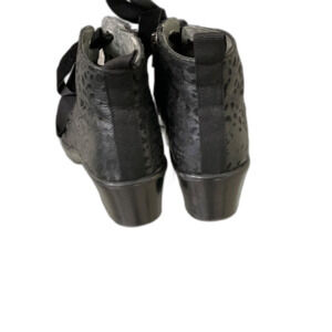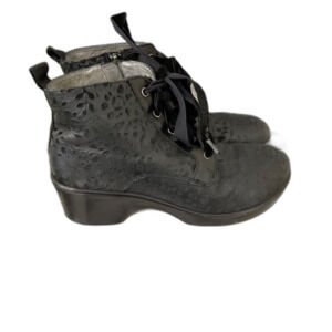Alegria Eliza Boots Women's 37 US size 7 Black Leather combat textured Zip & lace up Clog Booties shows wear scuffs, scratches, dust & marks see last photo for details.