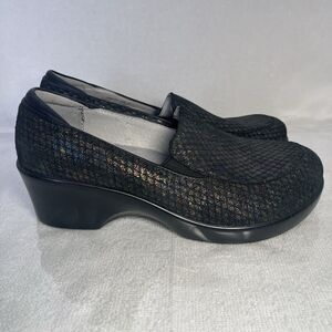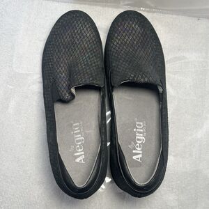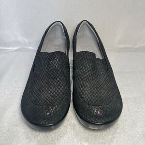 Alegria Emma Metal Rain Loafer Clogs Iridescent Fish Scale Leather Black Women 8