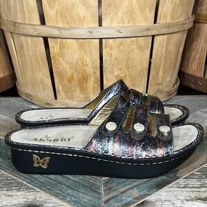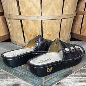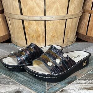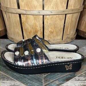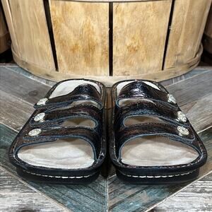 Alegria Fiona Black Brown Earthen Metallic Leather Slide Sandal Women US 8 EU 38