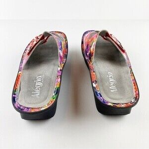 Alegria Fiona Iris Floral Leather Adjustable Straps Slip On Slide Sandals Size 8