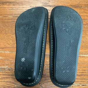 From comfort shoe brand, Alegria, the Fiona delivers on their patented footbed. The footbed design offers ample arch and heel support to help relieve stress on the legs, hips, and back from long hours on the feet. The three strap slide sandal is adjustable with hook and loop closure. The patent leather tan Cork color is distinctive and a great neutral. A perfect sandal for your travels. Hardly worn and in great condition. Women’s size 38 EU or 8-8.5 US.